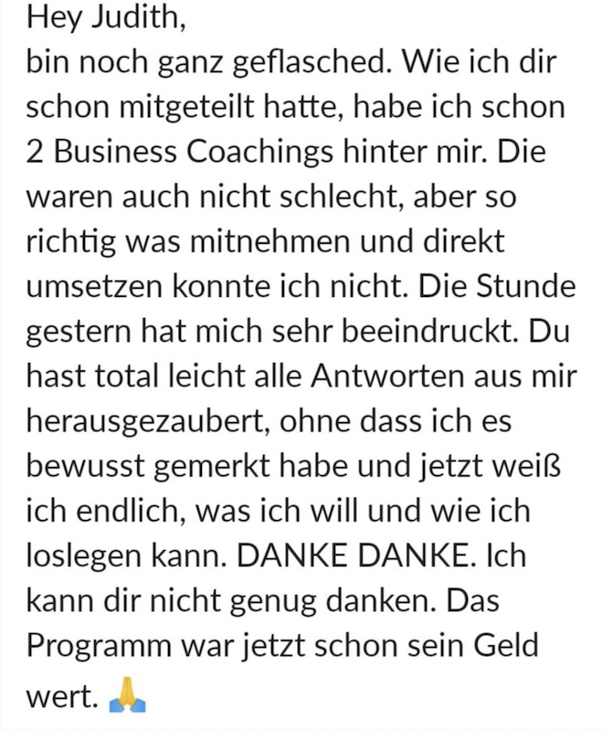 Abgeschlossenes 1:1 Coaching bei Judith oder erfolgreiches Vorgespräch
